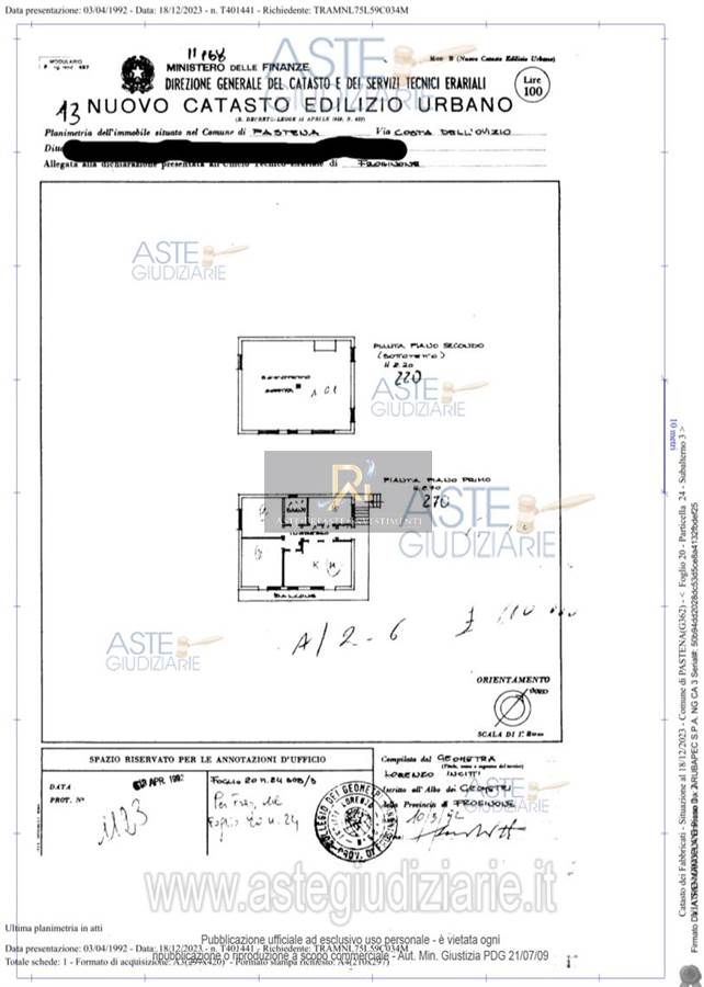 Appartamento piano 1-2, categoria A2. Bene n.2, Box auto ubicato a Pastena (FR). L'appartamento è composto da 5 vani catastali.