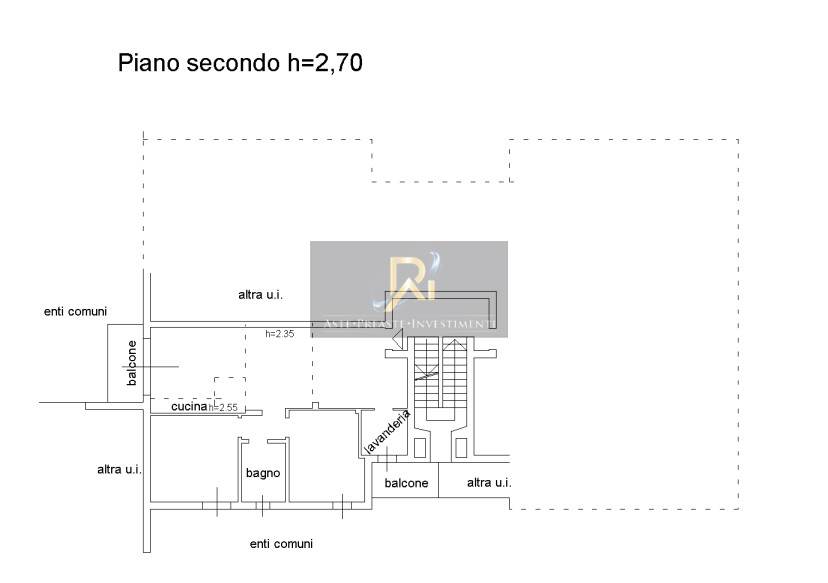Quota di intera proprietà di appartamento con cantina, sottotetto ed autorimessa.Appartamento situato al secondo piano composto da soggiorno con angolo cottura, lavanderia, due camere, un bagno, disimpegno, due balconi, cantina al piano seminterrato, autorimessa al piano terra e sottotetto al terzo piano.