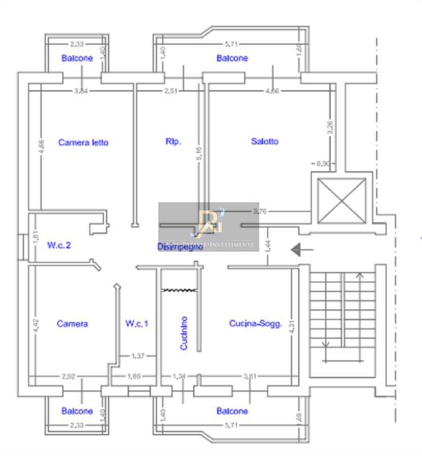 Piena proprietà di appartamento al piano terzo di circa 137 mq. Consistenza: 7,5 vani. Composto da ingresso/disimpegno, cucina/soggiorno incluso cucinino, salotto, due bagni, ripostiglio, due camere e quattro balconi.