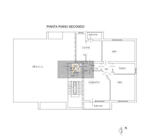Appartamento al secondo piano composto da da corridoio distributivo con angolo cottura e pranzo e soggiorno, due camere da letto e servizio igienico, dotata di due balconi e garage posto al piano terra cantinato della palazzina