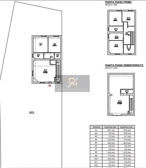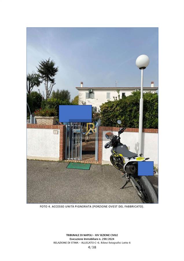 Villetta a schiera su tre livelli (piano S1-T-1), che si articola: al piano seminterrato in un ambiente unico con bagno; al piano terra in soggiorno, disimpegno, vano scala, camera da pranzo, cucina, bagno, ripostiglio; al piano primo in disimpegno, quattro camere, due bagni; oltre ad ampia corte esterna esclusiva di 685 mq;