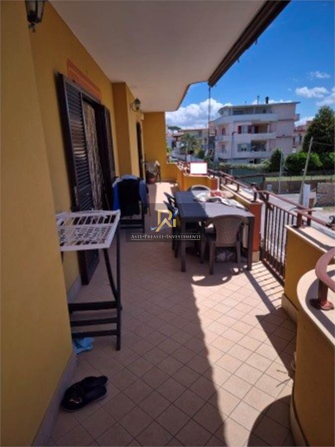 Appartamento al primo piano ed è composto da ingresso, salone/cucina, disimpegno, due ripostigli (di cui uno sul balcone), tre camere da letto, due bagni e due balconi. Costituisce pertinenza dell’appartamento il lastrico solare posto al secondo piano ed avente superficie utile di mq.195.