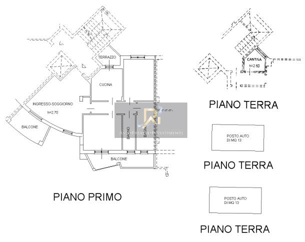 Appartamento posto al piano primo con cantina al piano terra e due posti auto scoperti. Composto da ingresso/soggiorno, cucina, disimpegno, due bagni, due camere, due balconi e terrazzo.