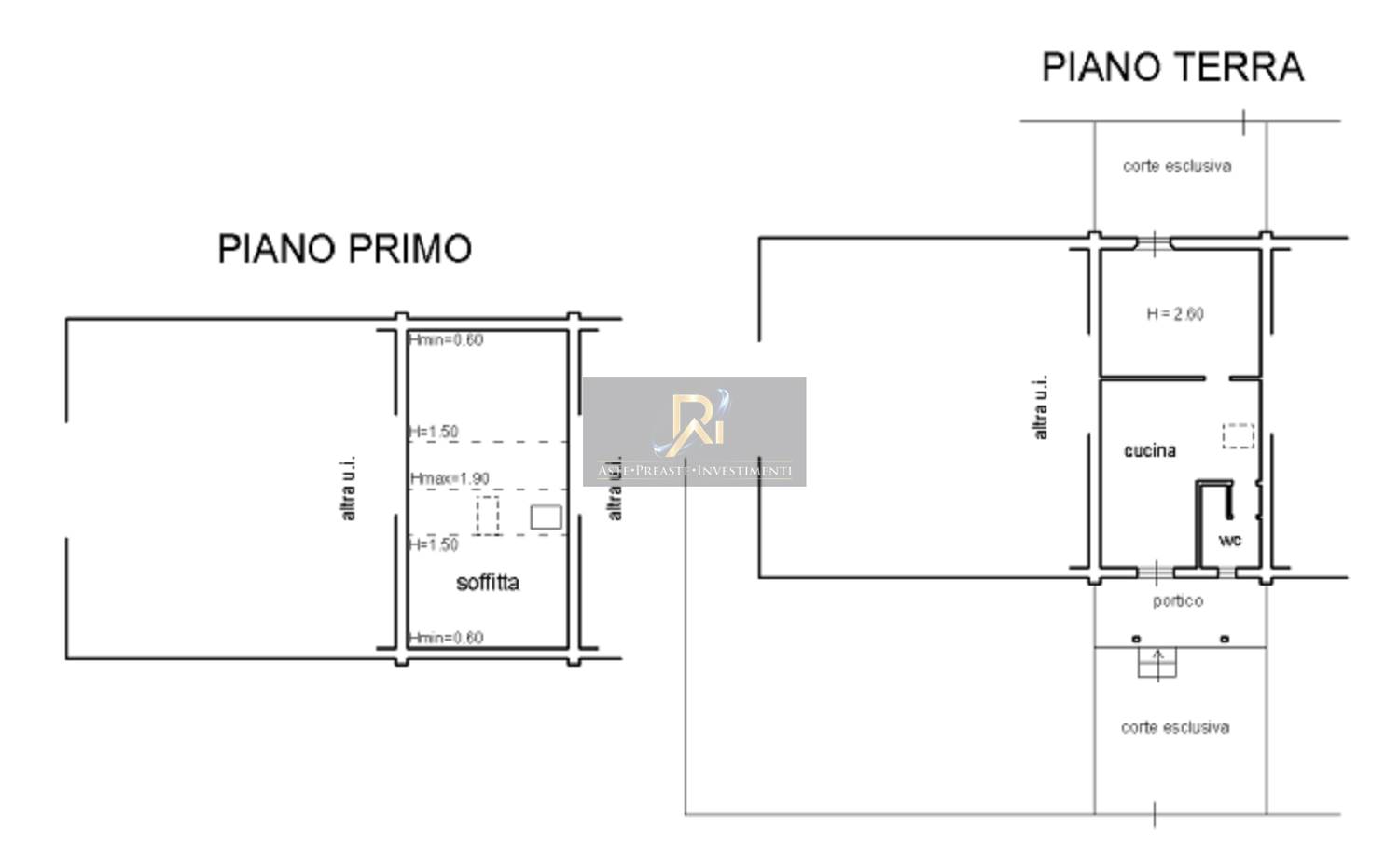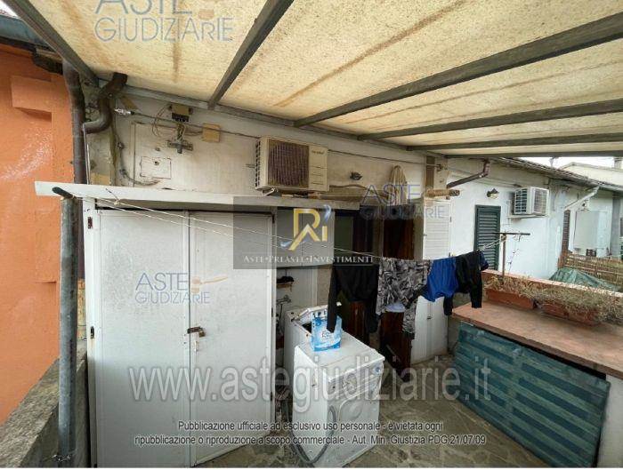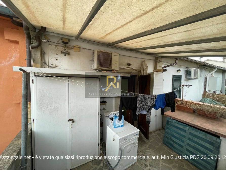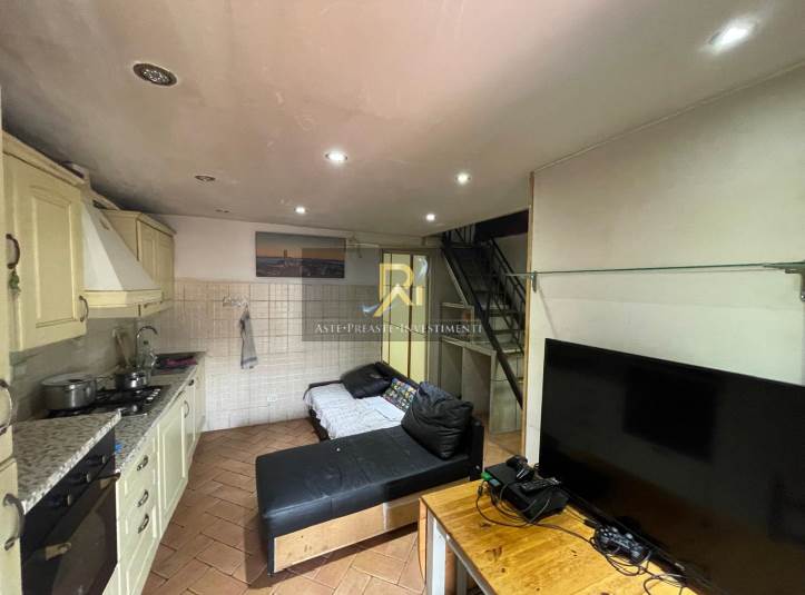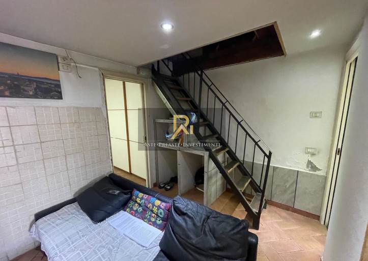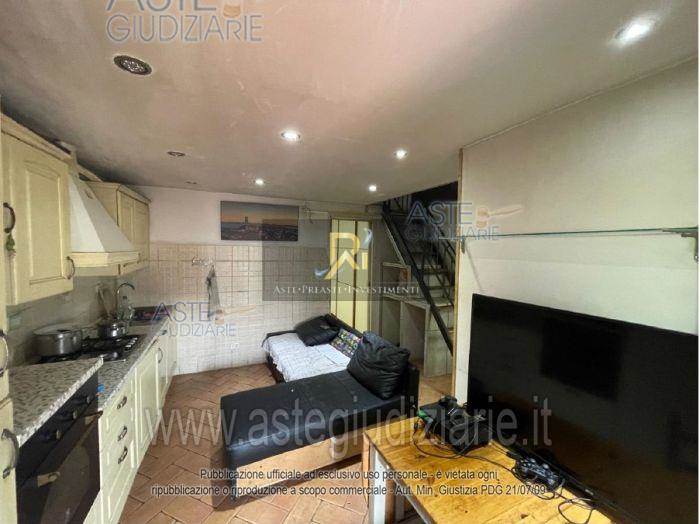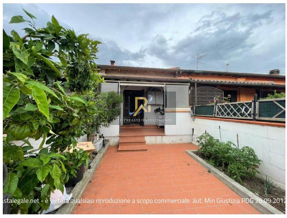 Piena proprietà di appartamento al piano terra e primo di circa 48 mq. Consistenza 3 vani. Composto da un piccolo soggiorno con angolo cottura, bagnetto, camera e locale sottotetto comunicante con il piano terreno tramite scala interna. Completano la proprietà due piccole corti esclusive, dotata di portico ed una sul retro dell'immobile, quest’ultima dotata di pergotenda e piccolo ripostiglio esterno.