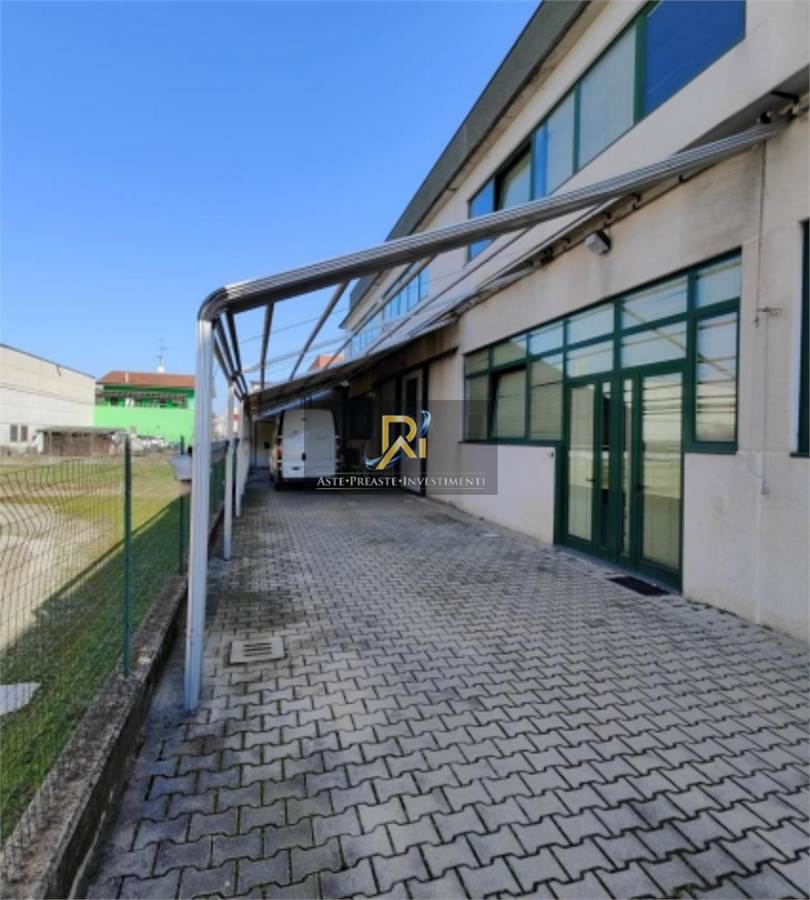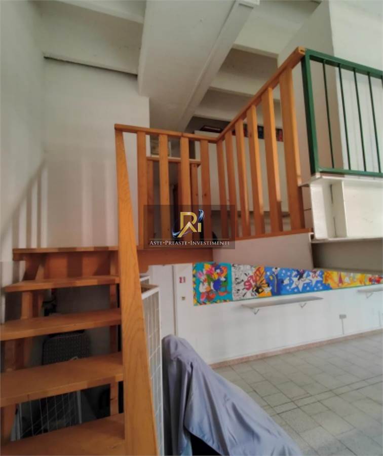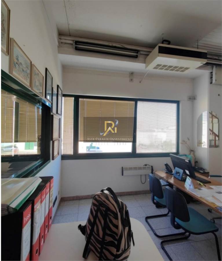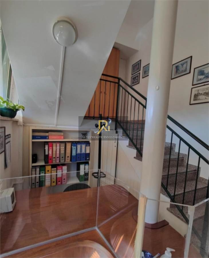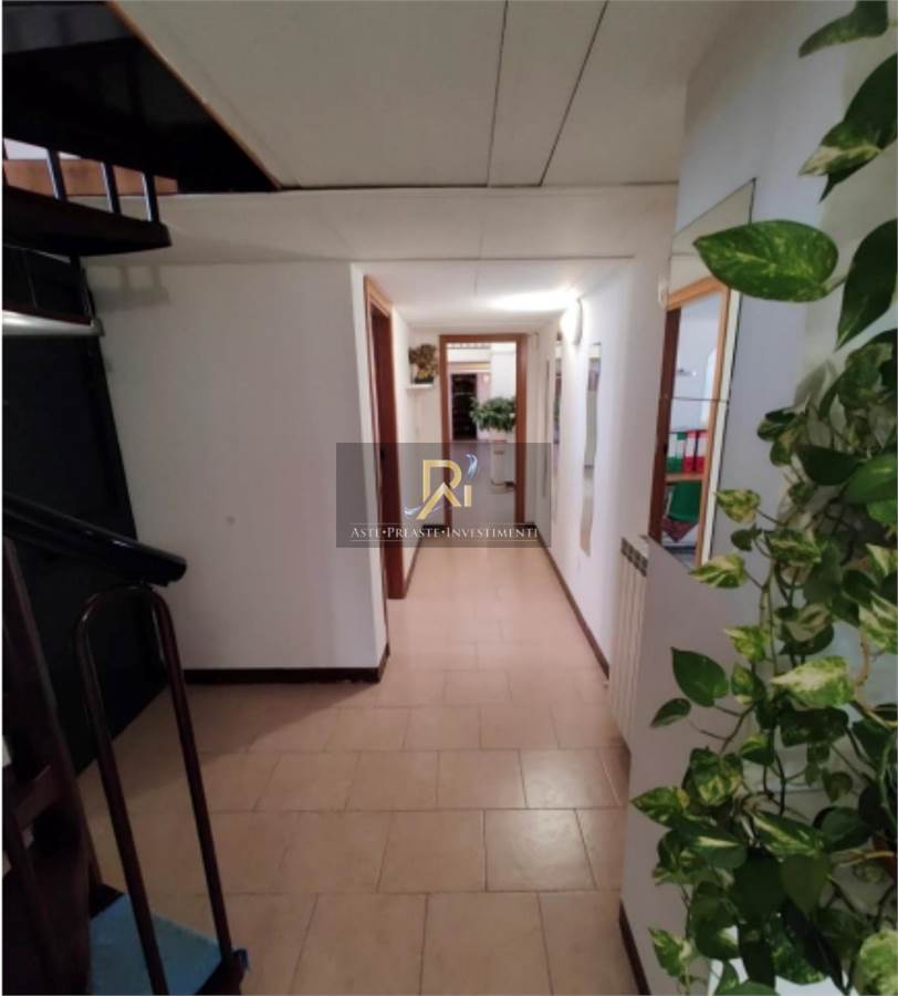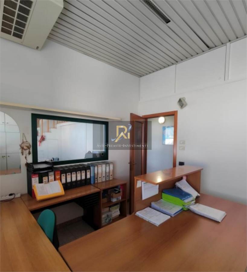 Porzione di fabbricato disposto su piano terra e piano primo collegati da scala interna, ad uso civile abitazione, magazzino e uffici, con area cortiliva di pertinenza esclusiva. Costituito da: - Unità ad ufficio posto al piano primo, costituito da tre locali ufficio, reception, sala riunioni e due w.c.; - Magazzino posto al piano terra, costituito da vano deposito, vano stireria, spogliatoio, bagno e due soppalchi; e appartamento ad uso residenziale posto al piano terra, composto da soggiorno-pranzo, camera e bagno.