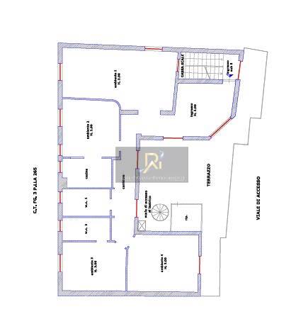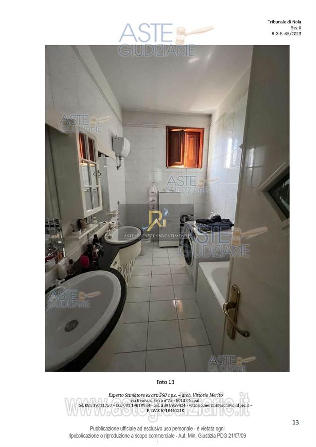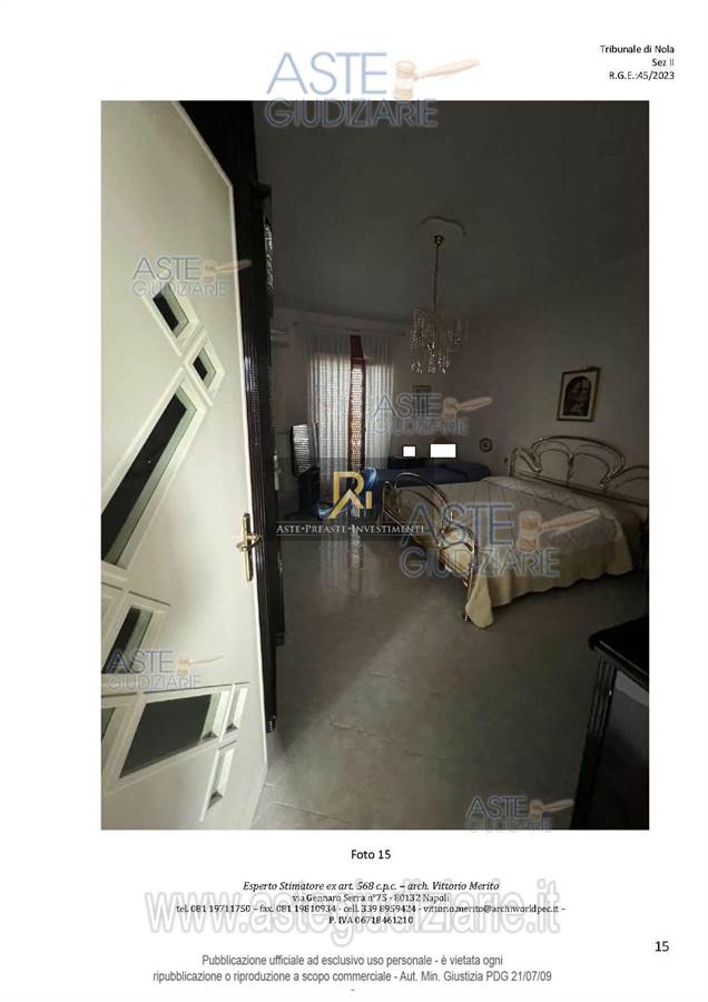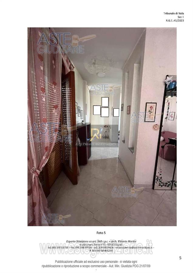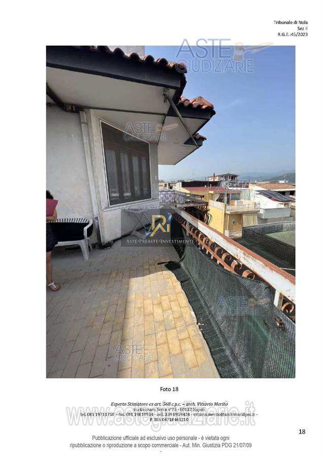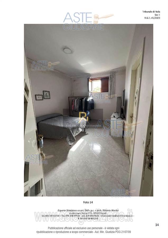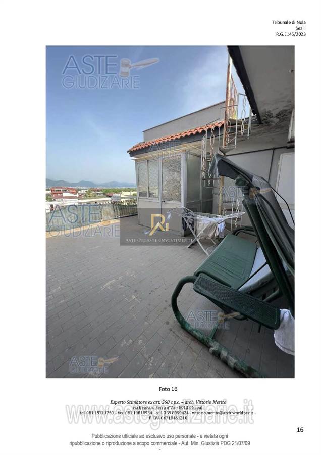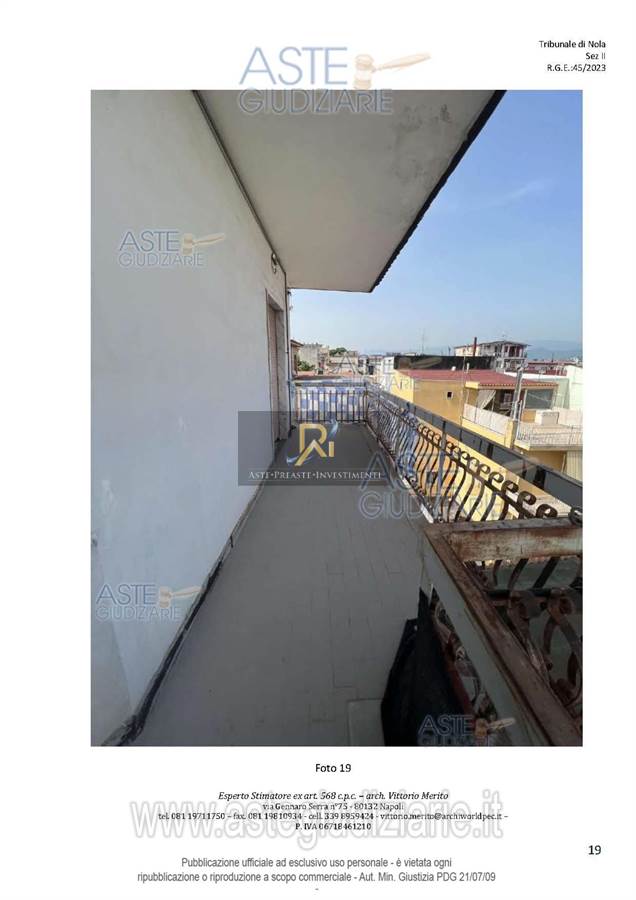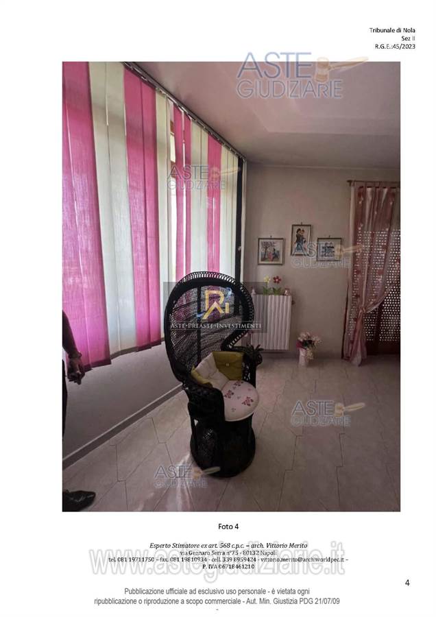 San Giuseppe Vesuviano, via Lucarelli n. 55/14, piano 3, proprietà appartamento, composto da ingresso, 4 ambienti, cucina, corridoio, 2 w.c. e terrazzo con ripostiglio in alluminio.