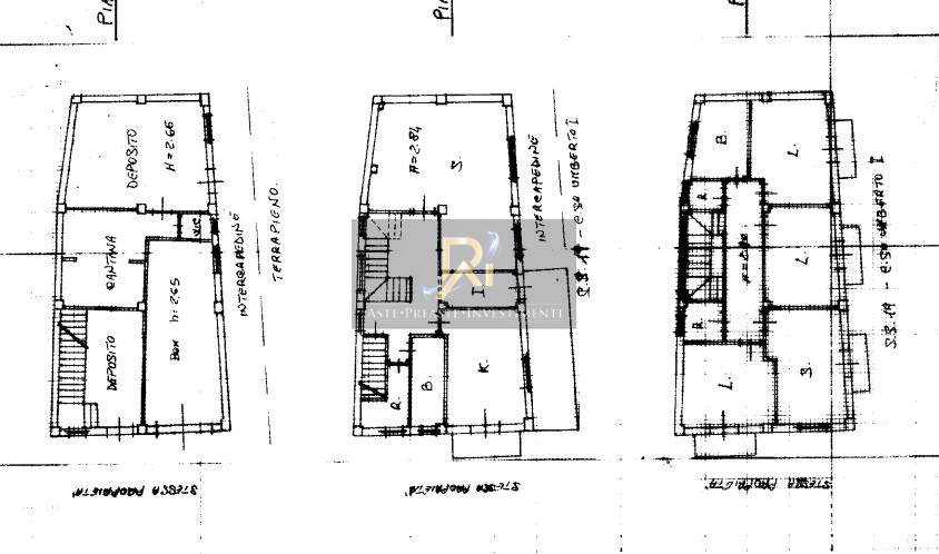 Abitazione su tre livelli composta da due depositi, cantina e box auto al piano terra, da soggiorno, cucina, bagno e ripostiglio al piano primo, da quattro camere, bagno e due ripostigli al piano secondo.