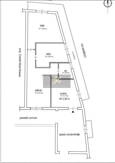 Appartamento al piano primo composto da cucina, salone, wc e due camere da letto oltre bacone esterno.