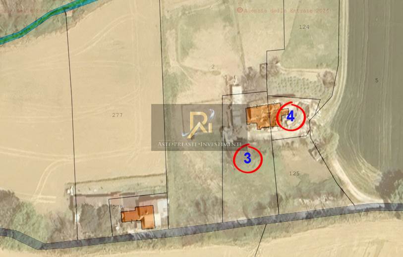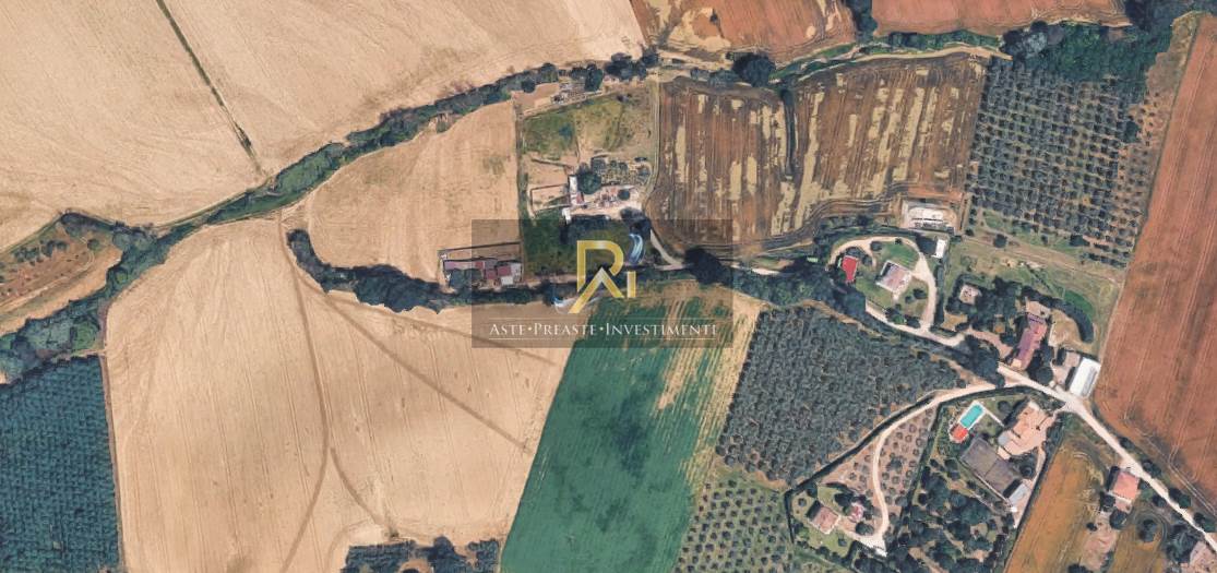 Piena proprietà su terreni e fabbricati situati nel comune di Sant’Elpidio a Mare, strada Monte Travaglioso. I beni costituiscono un fondo agricolo accorpato di circa 8208 mq, oltre la superficie occupata dai fabbricati. I fabbricati, anche se contraddistinti da due distinte particelle, sono tra loro adiacenti e formano un unico edificio residenziale, di due piani fuori terra, servito da un’unica corte.