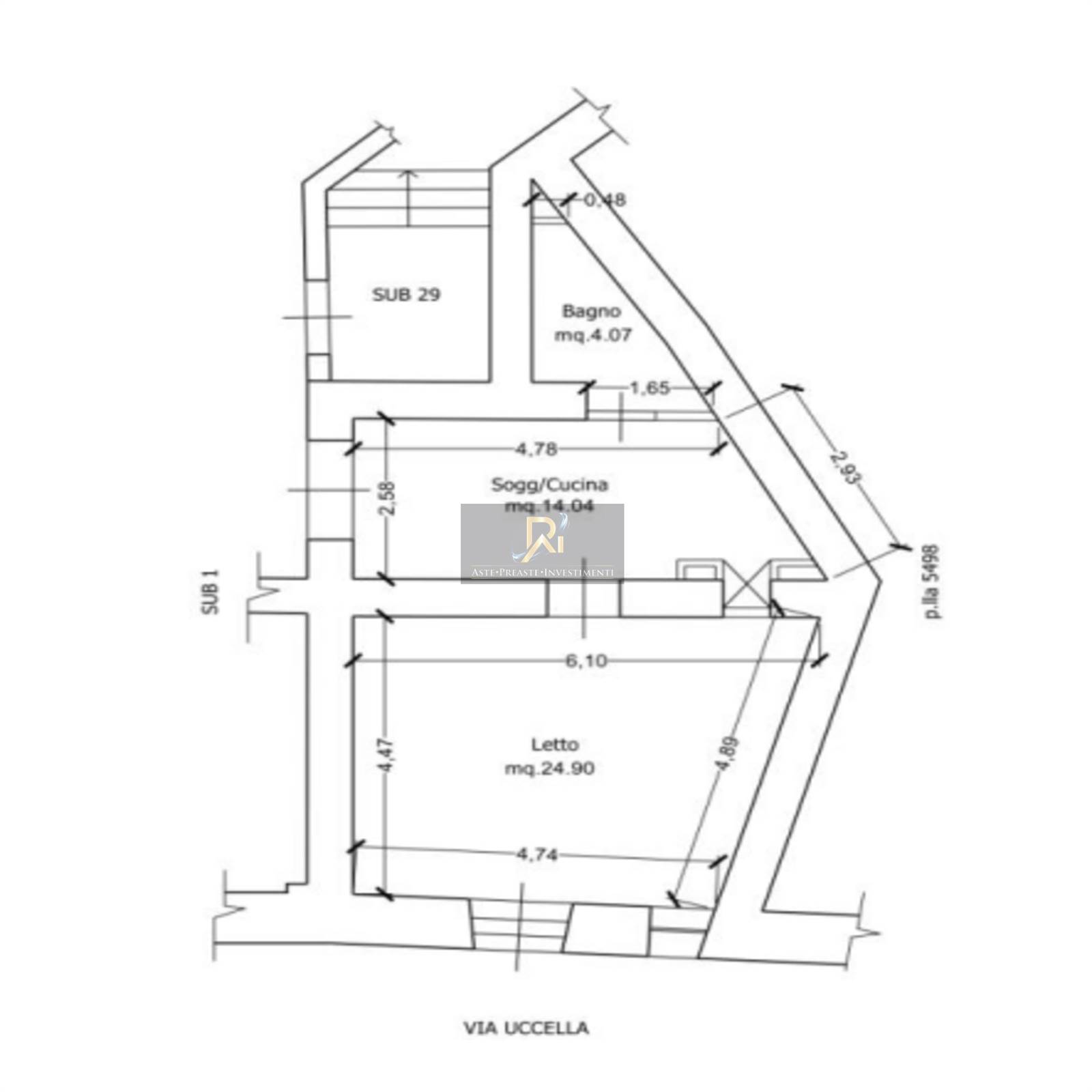 Immobile sito in Via Raffaele Uccella n. 14, composto da soggiorno con cucina a vista, camera da letto e bagno.