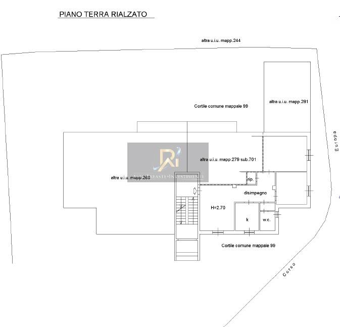 appartamento di mq 90 per la quota di 1000/1000 piena proprietà al piano rialzato composto da ampio locale soggiorno, locale cucina e due camere oltre bagno e ampio corridoio di disimpegno con ripostiglio.