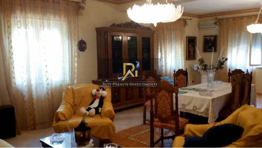 Piena proprietà di appartamento al piano secondo di circa 269,8 mq. Consistenza: 13,5 vani. Composto al piano terra da ingresso/disimpegno, soggiorno, bagno, cucina, vano scale per il piano superiore con sottostante ripostiglio e salone. Il piano terra si completa con due piccoli ambienti, accessibili dall’esterno, adibiti rispettivamente a ripostiglio e locale doccia, e un porticato adiacente a salone e cucina, collegato con il cortile esterno tramite due scalette. Al piano primo sono ubicati disimpegno, quattro camere, un ripostiglio, un cucinino e due bagni. Anche il primo piano ha un ampio porticato.