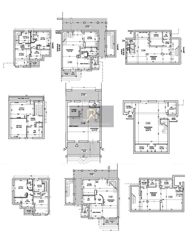 Appartamento sub 503 al piano seminterrato, soggiorno/cucina, dispensa, studio e bagno, al piano primo soggiorno, cucina, bagno e al piano primo tre camere, bagno e balcone di mq 8,10.