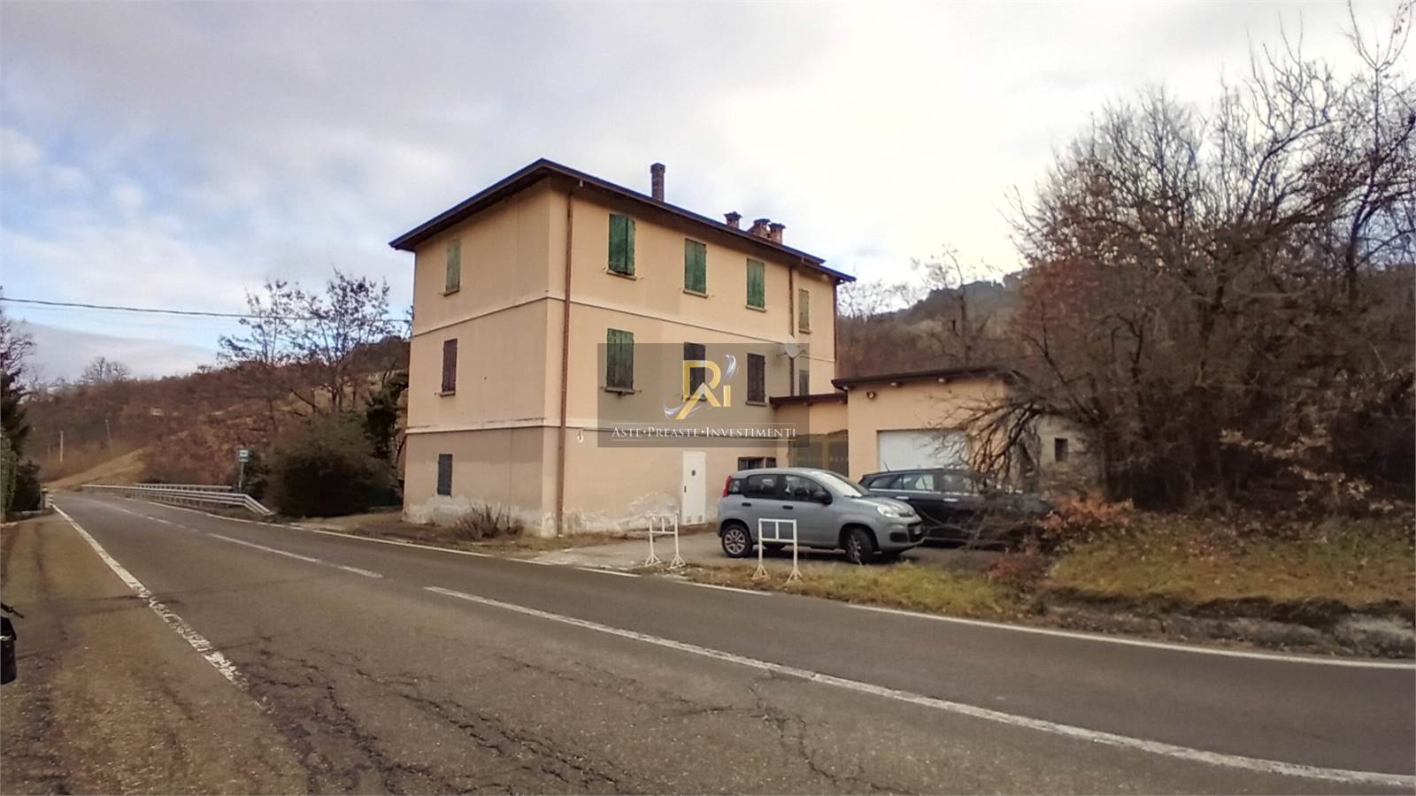 Piena proprietà di "ex casa cantoniera" a tre piani con laboratorio al piano terra, appartamento al piano primo, appartamento al piano secondo, autorimessa a due posti auto, basso servizio a legnaia in corpo staccato e in area cortiliva comune.