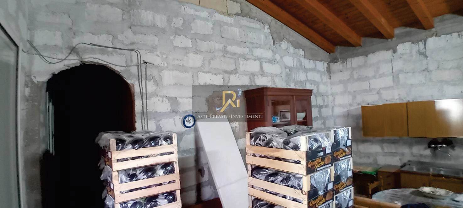 Piena proprietà di appartamento al piano terra di circa 100 mq. Consistenza: 5 vani. Composto da cucina, bagno, disimpegno, ripostiglio, due vani, tettoia. Secondo immobile adibito a ricovero attrezzi e deposito concime.