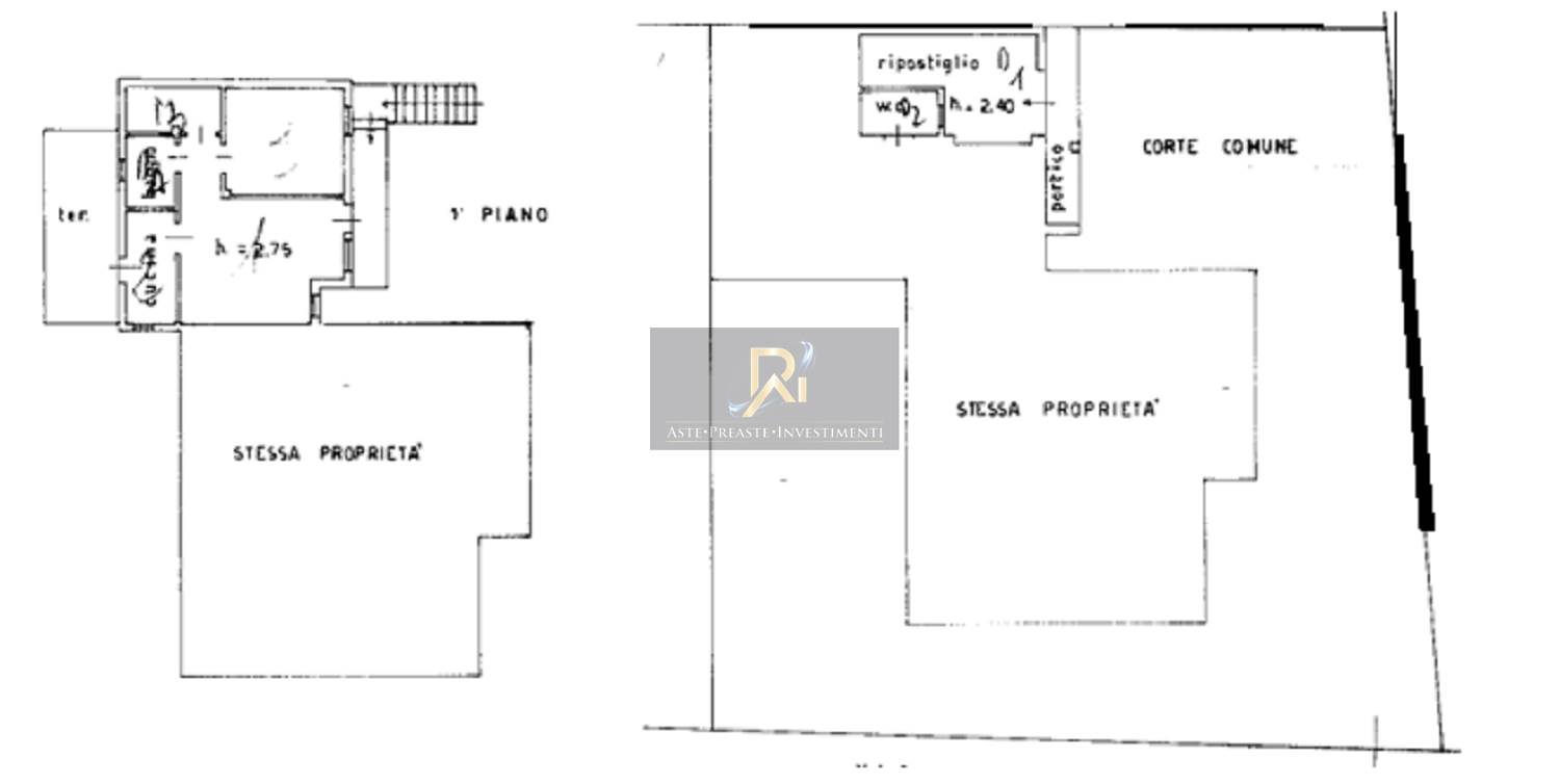 Piena proprietà di appartamento al piano terra e primo di circa 62 mq. Consistenza: 4,5 vani. Composto al piano primo da ingresso/soggiorno, cucina, camera, bagno, ripostiglio/lavanderia e terrazza. Al piano terra sono ubicati ripostiglio, bagno e portico. Si accede al piano primo da scala ubicata nel cortile comune e ballatoio.