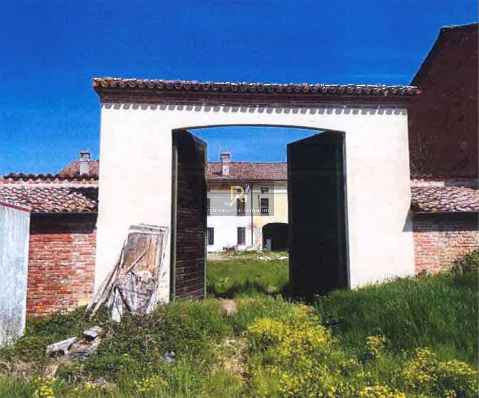 Complesso immobiliare costituito da un'ampia corte composta da due unità a destinazione residenziale (casa di abitazione di diciotto vani, con soffitta e grande rustico) ed una a destinazione magazzino comunicanti fra loro, con portico e locali accessori, oltre ad un'area di pertinenza ed un terreno di complessivi 4.500 mq circa, siti in Sabbioneta (MN), Località Ponteterra, Via Dovara n. 3.