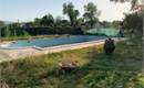 L’abitazione si sviluppa principalmente al piano terra con ingresso, soggiorno con camino, cucina, due camere e un bagno, oltre portico esterno. Completa la proprietà un ampio giardino esclusivo di oltre 4.000 mq con piscina, tettoia, strutture accessorie e impianto fotovoltaico.