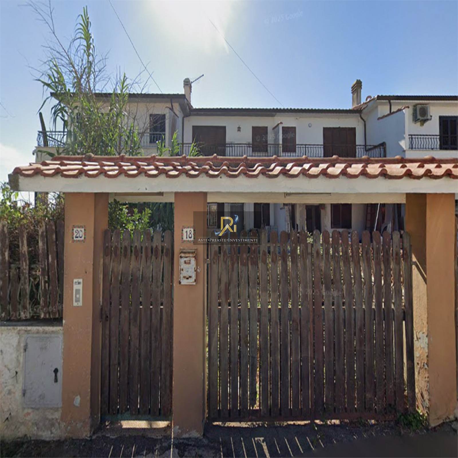 Piena proprietà di villino al piano seminterrato, terra e primo di circa 93 mq. Consistenza: 6,5 vani. Composto al piano terra da soggiorno, cucina e un bagno; esiste anche uno spazio giardino sul lato opposto dell’immobile. Al piano primo si trovano due camere, un bagno e un balcone. Il piano sottostrada risulta come posto auto.