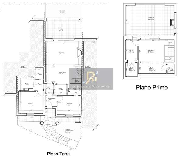 collocata in corrispondenza del portone di ingresso, un atrio di ingresso, due disimpegni, una cucina separata dalle ridotte dimensioni, un'ampia zona giorno con camino e sala da pranzo formalmente separata, un ripostiglio, due camere da letto, due bagni. Il primo piano è caratterizzato da una camera, un bagno, tre vani con altezza interna inferiore a 1,5 metri destinati a ripostiglio, ricovero per scaldabagno elettrico, ricovero per lavatrice. Il piano