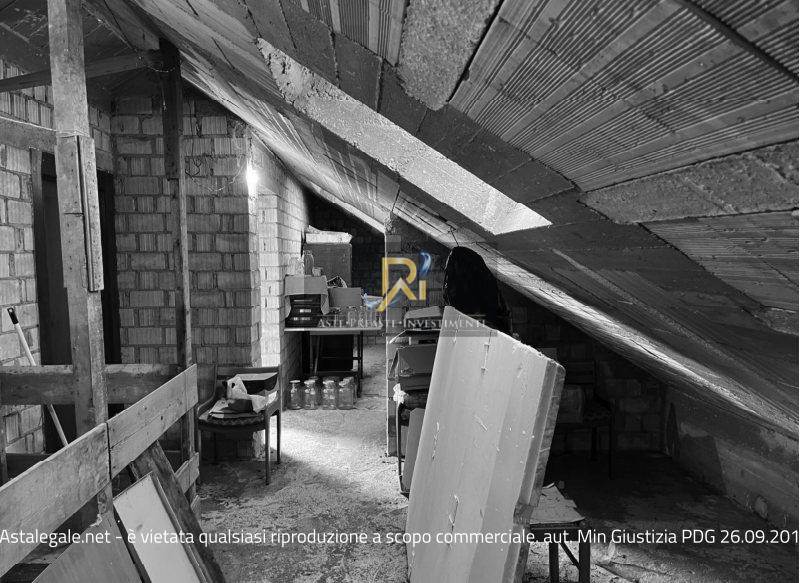 Piena proprietà di appartamento al piano terra, primo e secondo (sottotetto) di circa 177 mq. Consistenza: 9,5 vani. Composto al piano terra da locale deposito/legnaia da definire. Al piano primo sono ubicati ingresso/soggiorno, due disimpegni, cucina, bagno, camera e ripostiglio allo stato grezzo. Il piano secondo, sottotetto, ha destinazione non residenziale composto da ripostigli, anch’esso allo stato grezzo. Corte esterna di pertinenza, superficie 593 mq.