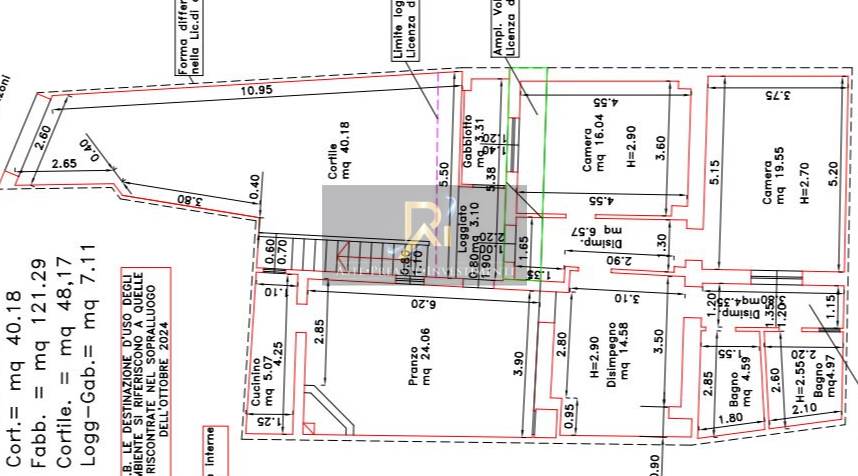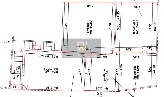Immobile composto al piano terra da un cucinino, una sala pranzo, due camere, tre disimpegni, due bagni. Il piano primo e invece composto da un sottotetto e da una terrazza. Completano la consistenza un cortile ed un loggiato nel quale è stato ricavato un gabbiotto.