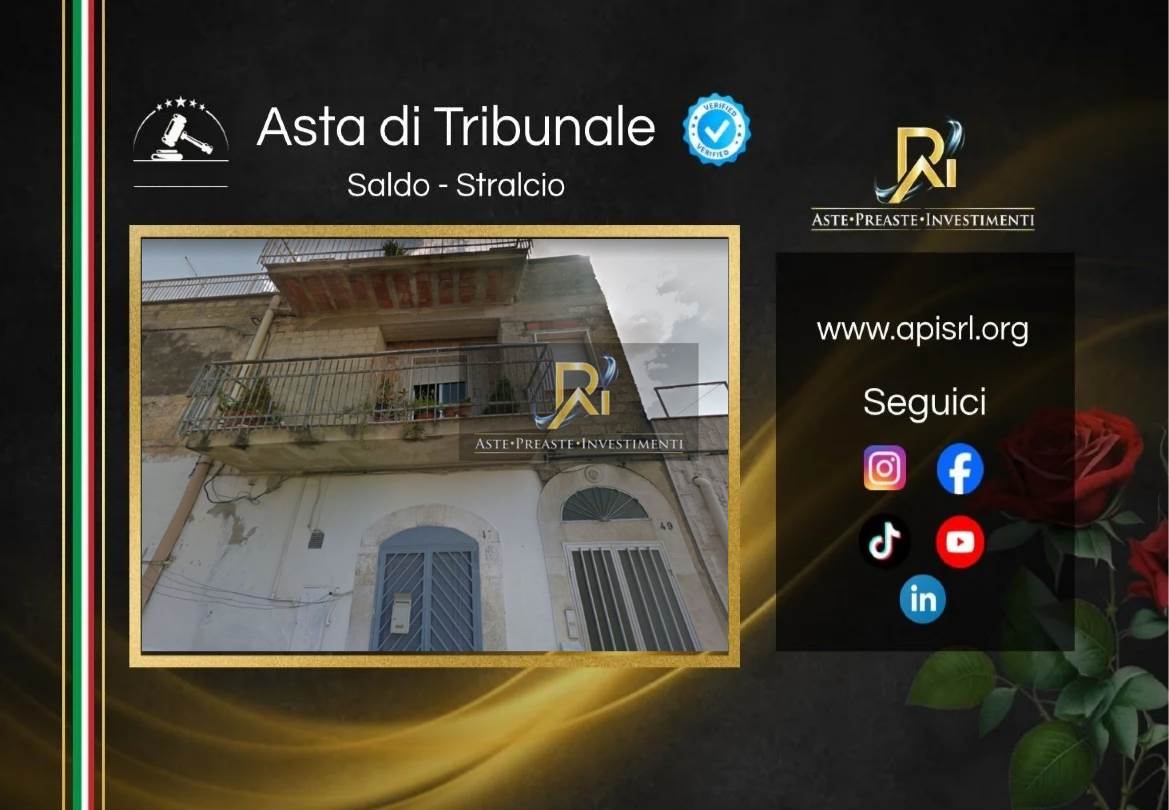 Trattasi di Vendita Giudiziaria con l'Ausilio di A.P.I. Srl, studio di riferimento per le acquisizioni degli immobili in AstaGiudiziaria e acquisti in Pre-Asta.