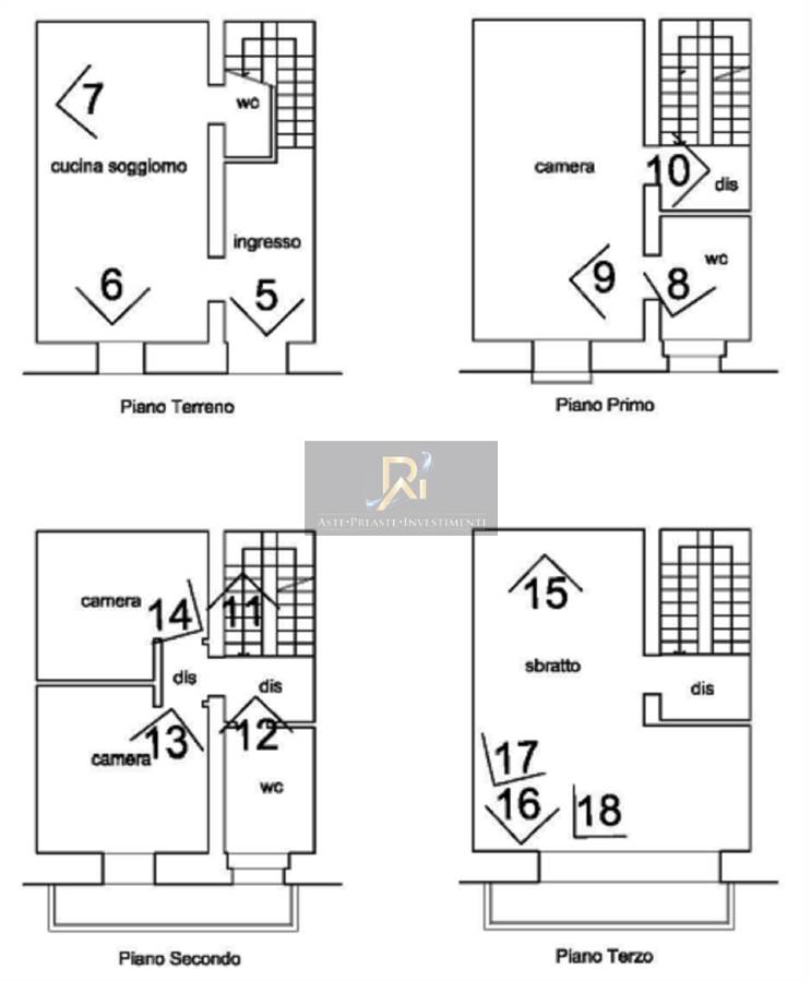 Piena proprietà di appartamento al piano terra, primo, secondo e terzo di circa 125 mq. Consistenza: 5,5 vani. Composto al piano terra da ingresso con vano scale che conduce al piano superiore, cucina/soggiorno e bagno. Al piano primo sono ubicati disimpegno con vano scale, camera, bagno e balcone. Al piano secondo sono presenti disimpegno con vano scala, disimpegno, bagno, due camere e balcone. Al piano terzo è presente disimpegno con vano scale, locale di sgombero e balcone.