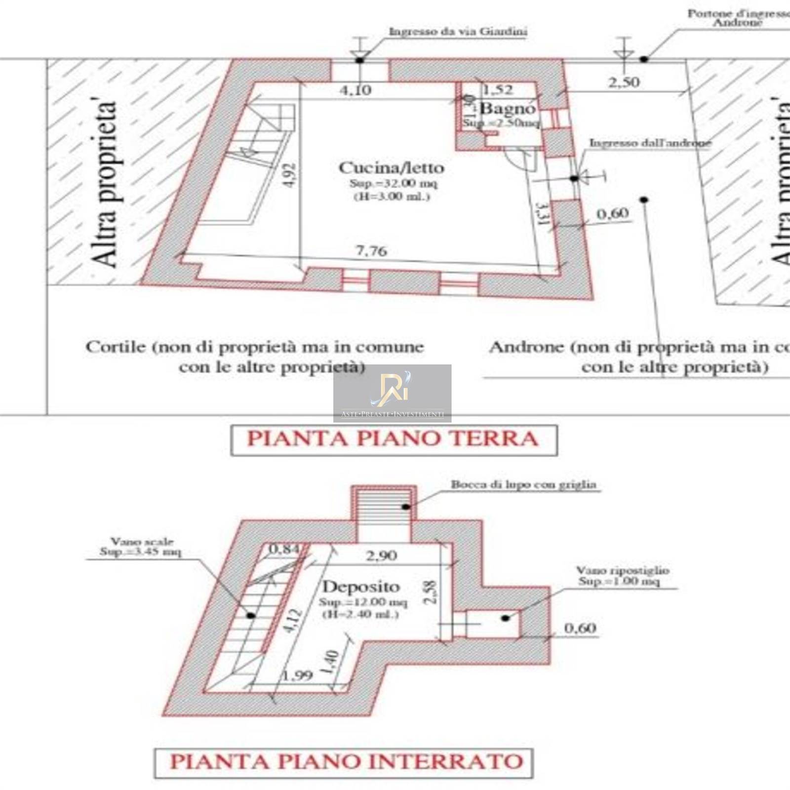 Immobile unifamiliare composto da un piano terra e da piano interrato - Il piano terra risulta adibito a monolocale con bagno, mentre il piano interrato a deposito.