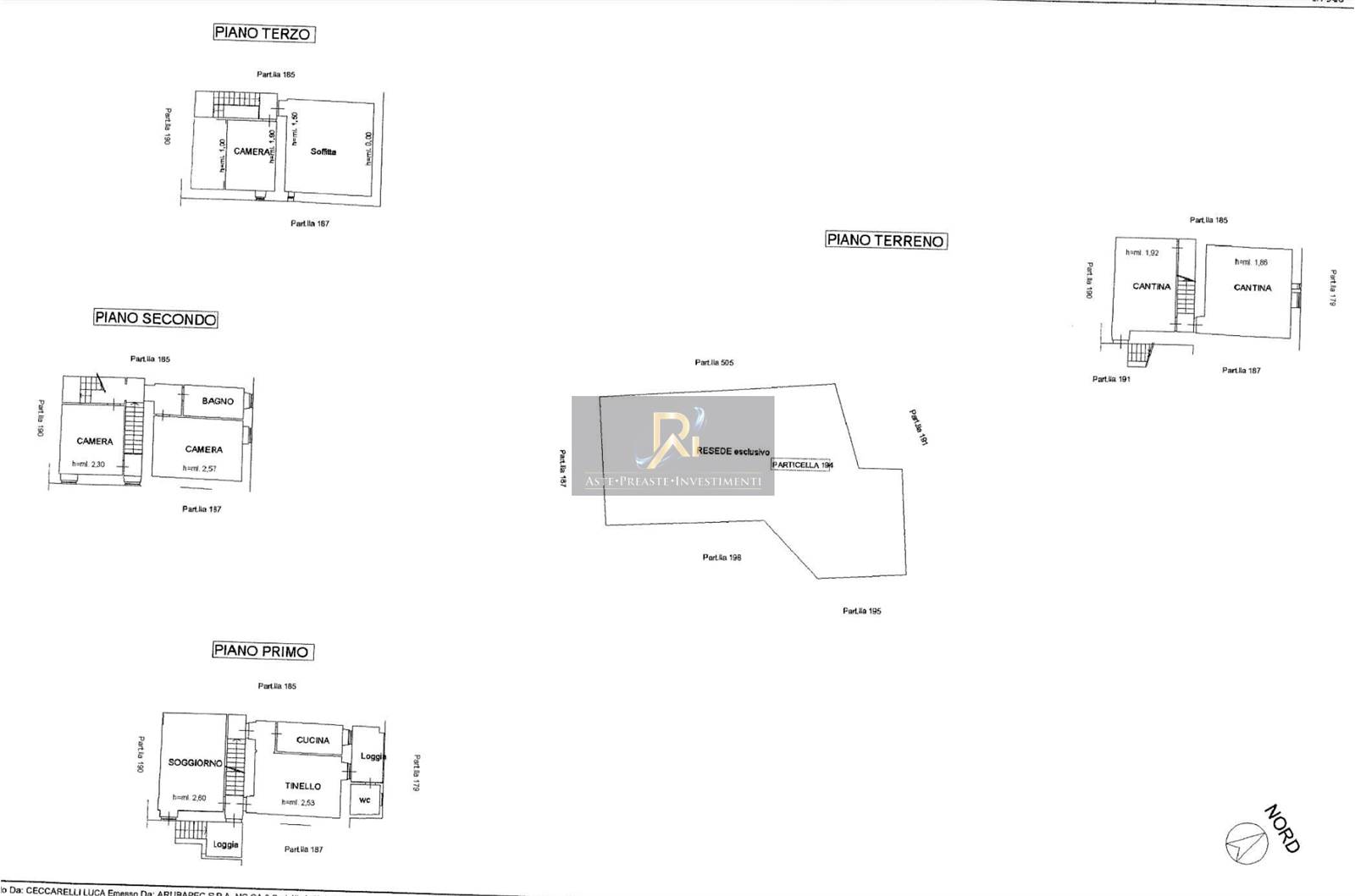 Porzione di fabbricato residenziale ubicato in Castel San Niccolò (AR) Via Borgopiano n. 122 Frazione Cetica, composto da n. 6 vani, oltre n. 6 vani accessori, disposto su più livelli (piano terreno, primo, secondo e terzo), integrato da resede esterno esclusivo ad uso piazzale e verde di circa mq. 140 posto nelle vicinanze del fabbricato, oltre terreni a uso agricolo e boschivo con superficie totale di circa ha. 1.85.50. Così disposto_