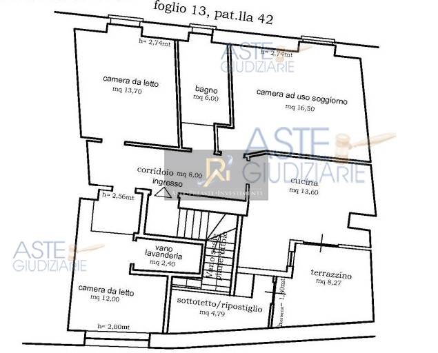 Appartamento al piano secondo composto da ingresso/corridoio, camera ad uso soggiorno, cucina dalla quale si accede al terrazzino direttamente comunicante con vano sottotetto ad uso ripostiglio, bagno, camera da letto, camera da letto con annesso vano ad uso lavanderia.