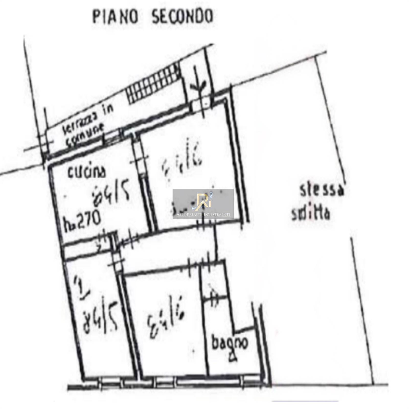 Appartamento di tipo popolare sito nel Comune di Gavorrano (GR), frazione Giuncarico, Vicolo Cieco n. 13, ubicato all’ultimo piano del fabbricato. L’unità immobiliare è composta da soggiorno, cucina con ripostiglio, due camere da letto e bagno, con accesso tramite scala esterna su terrazza comune.
