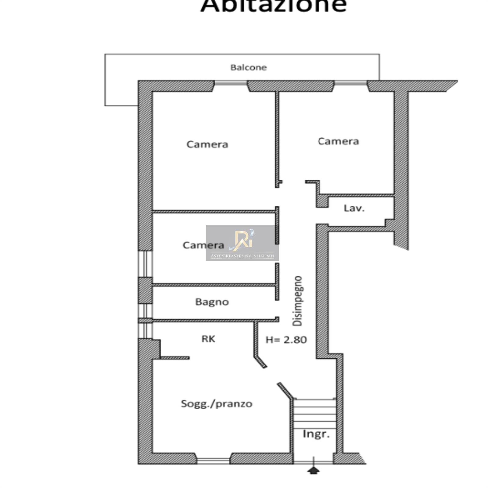 L’unità abitativa è composta da ingresso/disimpegno, soggiorno-pranzo, cucina, due camere da letto, bagno, oltre a balcone.