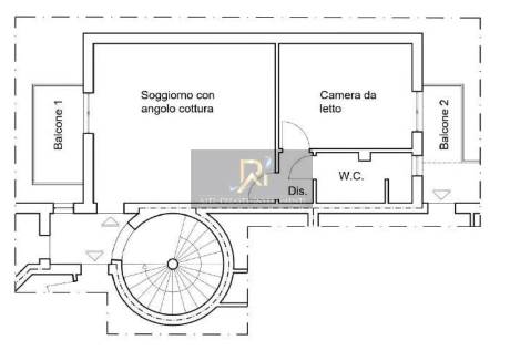 Appartamento al piano secondo composto da soggiorno con angolo cottura, camera da letto, disimpegno e due balconi.