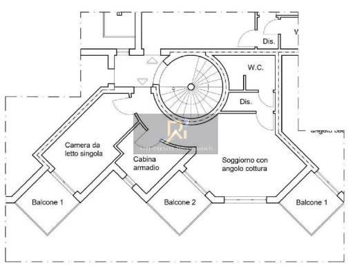 Appartamento al piano secondo composto da soggiorno con angolo cottura, camera da letto, cabina armadio, disimpegno, bagno e tre balconi.