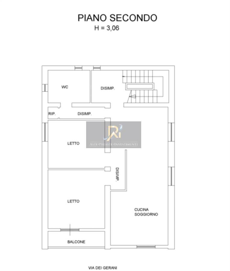 Appartamento posto ai piani secondo e terzo, composto da soggiorno/cottura, due camere, bagno e balcone al piano secondo, vano, bagno e terrazza al piano terzo.
