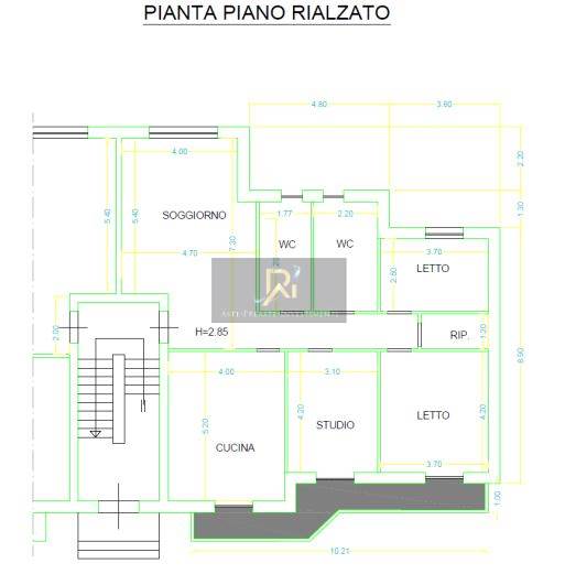Appartamento al piano terra composto da salone, cucina, tre camere, due bagni e ripostiglio.