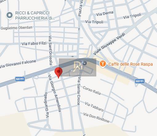 L'immobile è un fabbricato a pianta trapezoidale prospiciente su tre strade (Via Tobagi, Via De Gasperi, Via Pirandello).