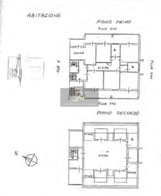 Abitazione posta al piano primo e secondo e composta da soggiorno, cucina, altro vano e bagno al piano primo, tre camere e bagno al piano secondo.