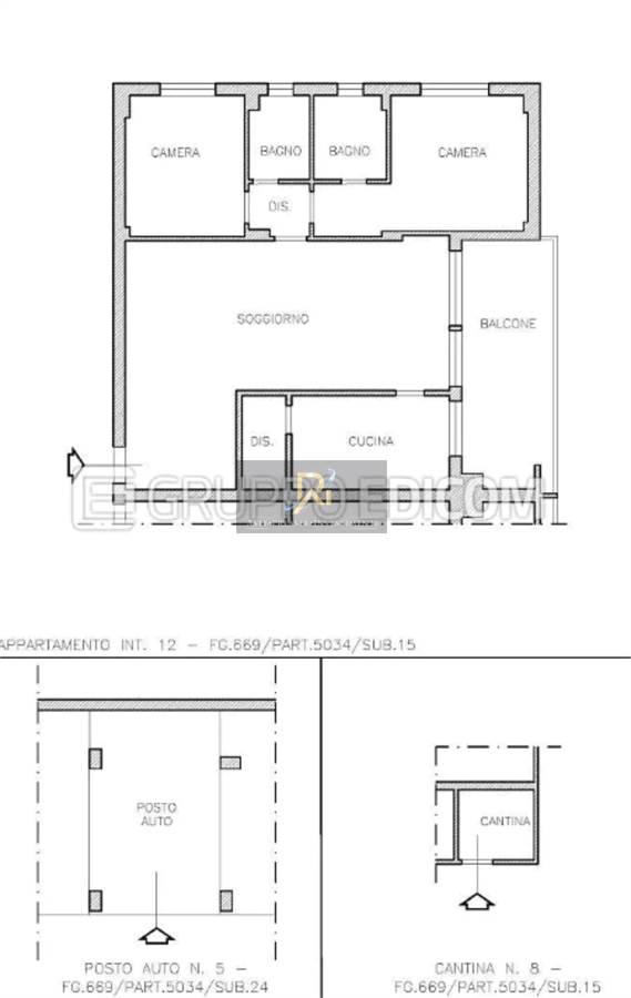 Appartamento posto al piano secondo, composto da: ingresso/soggiorno, disimpegni, due bagni, ripostiglio, cucina, due camere e un balcone;- con annessa cantina al piano S1.