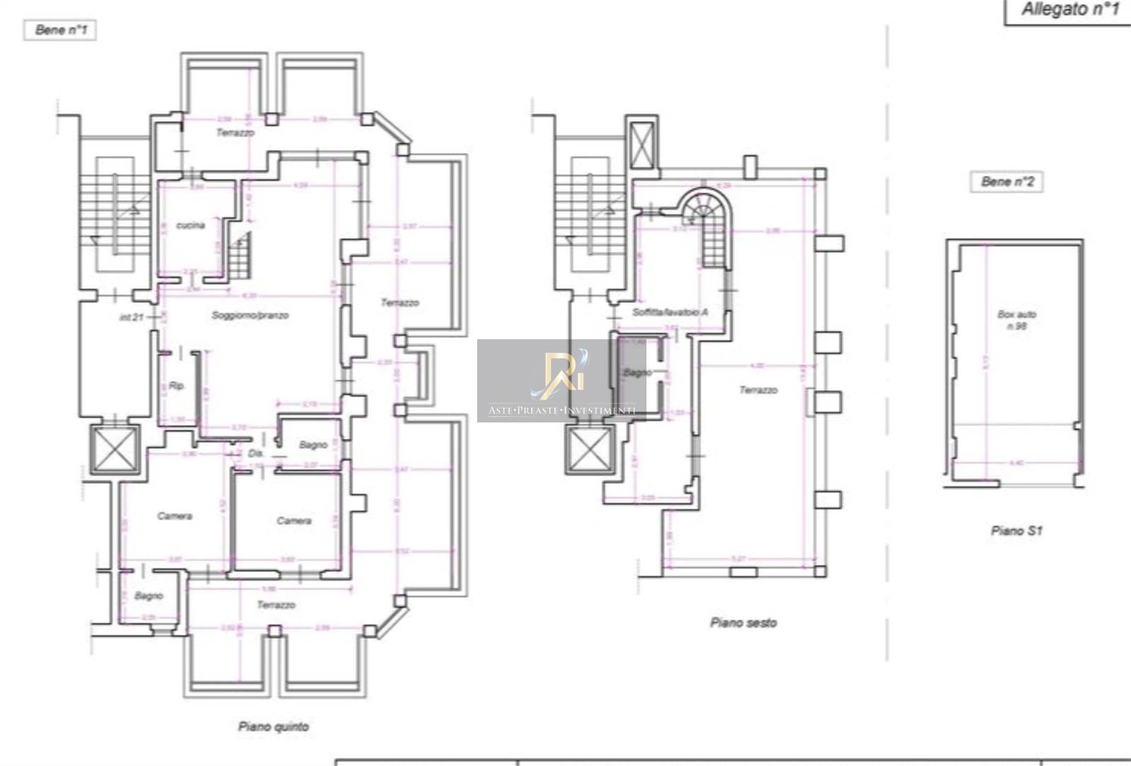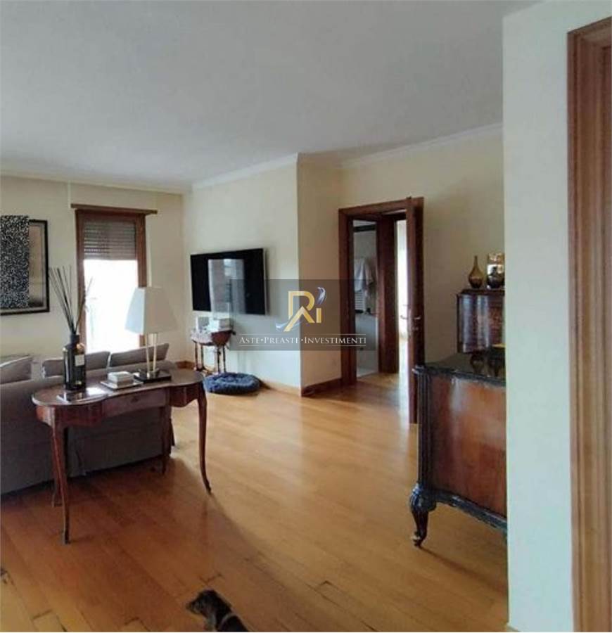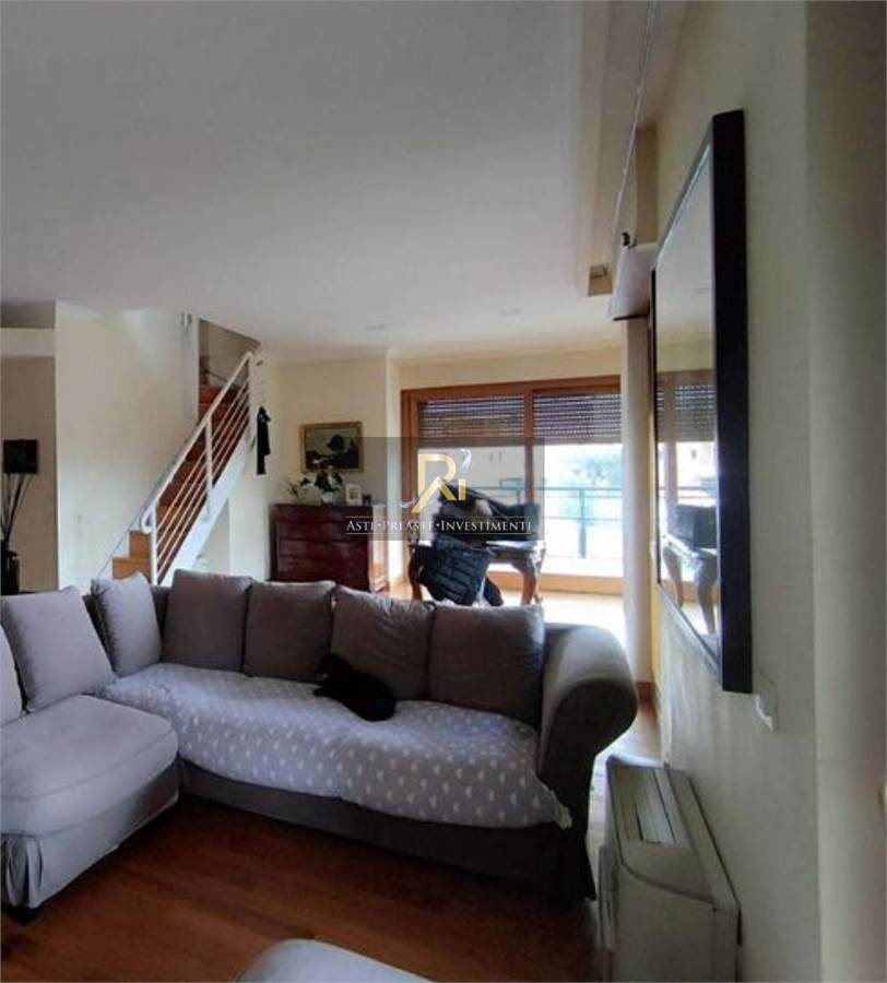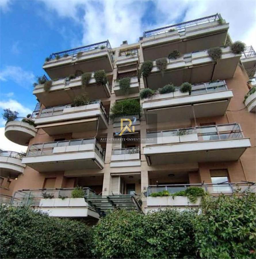Appartamento con soffitta siti al piano 5-6, composto al piano inferiore di soggiorno, cucina, due camere, due bagni, ripostiglio (ex w.c.) e disimpegno nonché di un ampio terrazzo a livello; al piano sesto, raggiungibile tanto mediante una scala interna al soggiorno quanto mediante ingresso autonomo dal vano scala condominiale, si individua una soffitta costituita da due vani ed un bagno (da ripristinare), oltre ampio terrazzo a livello ad uso esclusivo. Box auto di proprietà.