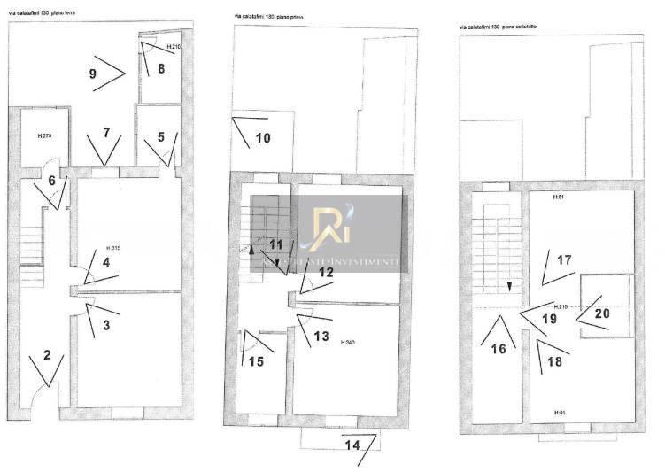 Piena proprietà di appartamento al piano T-1-2 di circa 235,6 mq. Consistenza: 7,5 vani. Al piano terra composto da ingresso, corridoio, camera, cucina, ripostiglio esterno, ripostiglio sottoscala e bagno. Al piano primo intermedio si accede a un piccolo lastrico solare posto a copertura del bagno al piano terra. Al piano primo, sono ubicate due camere e un bagno. Al piano secondo sottotetto sono presenti tre ripostigli.