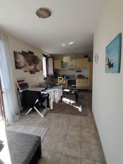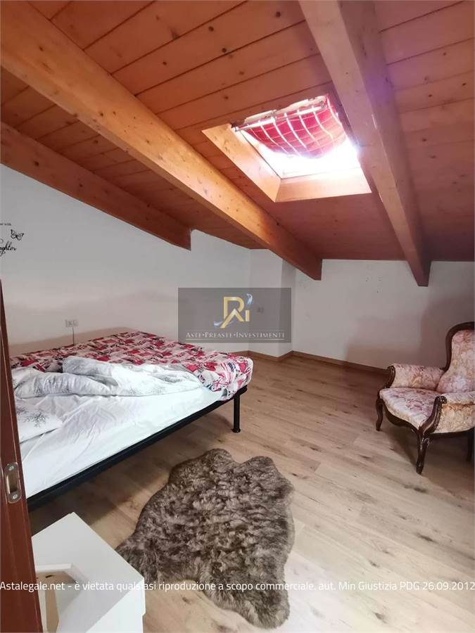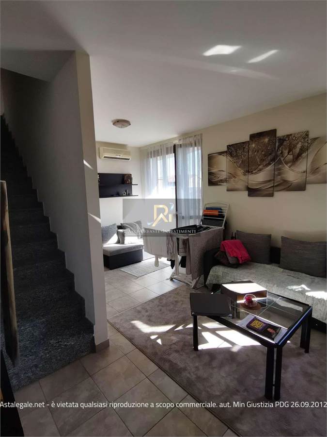 Piena proprietà di appartamento al piano primo e secondo di circa 75,50 mq. Consistenza: 3,5 vani. Composto al piano primo da monolocale (soggiorno con angolo cottura), balcone, disimpegno, bagno, scala interna che collega il piano primo al sottotetto, dove sono ubicate due camere e un bagno. Completano la proprietà una cantina posta al piano interrato e un box singolo di 20 mq.
