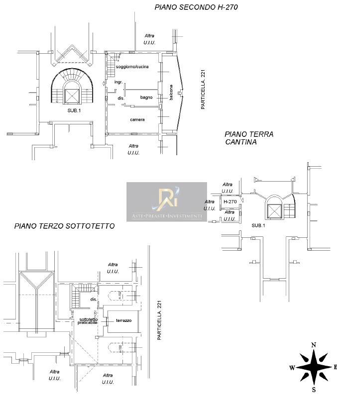 appartamento al pt/p2/p3 superficie 107 mq composto da n. 2 locali, angolo cottura, bagno e balcone al p2, locale sottotetto e terrazzo al p3, cantina al pt, oltre posto auto 14 mq al pt