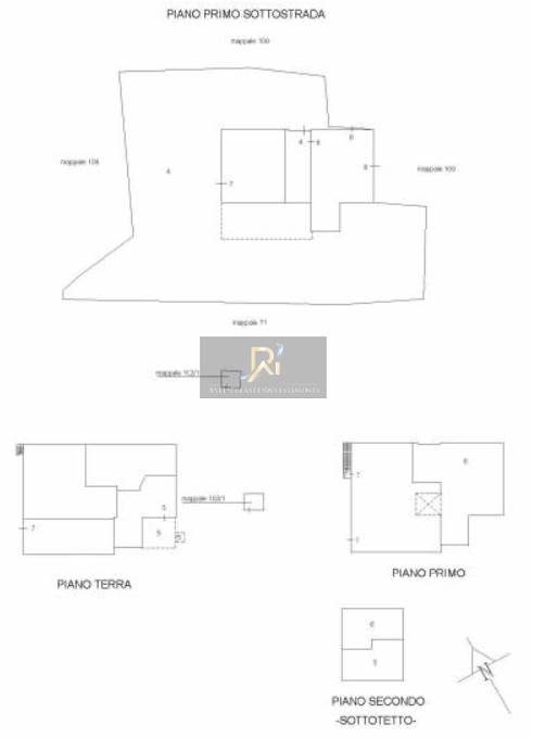 Piena proprieta' di due fabbricati agricoli promiscui collabenti, composti da un fabbricato (mappale 92) che era formato da alloggio, ex stalla con tre locali di deposito e fienile; fabbricato (mappali 102-103-105) che era formato da due alloggi e da ex stalle e fienili, oltre locali di deposito; porzione agricola composta da due ex stalle e fienile.