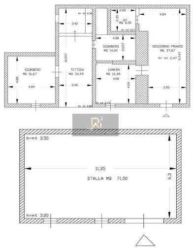 Abitazione di tipo civile al piano terra di circa 172 mq. Consistenza: 3,5 vani. Composto da soggiorno, camera, due locali di sgombero, bagno e tettoia. Con stalla e terreni agricoli